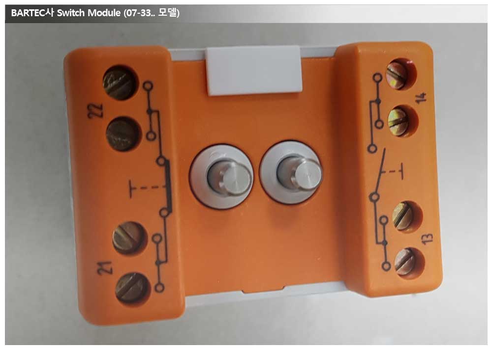 BARTEC사는 Switch를 구성할때 actuator에 물리는 Switch 모듈을 1-NO&1-NC, 2-NO, 2-NC 로 각각 분리하여 공급하고 있습니다.